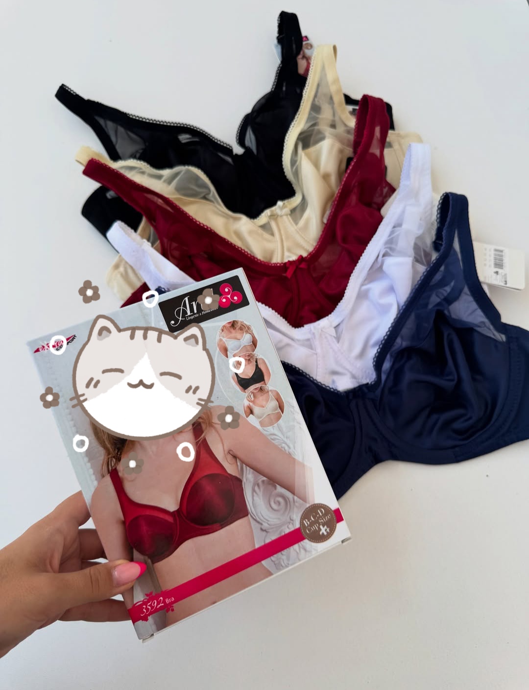 این سوتین زنانه مدل مینی مایزر (جمع کننده) است. با جمع کردن سینهها آنها را کوچک نشان میدهد. مدل ۳۵۹۲ دارای استاندارد ضد سرطان AZO TEST است. این سوتین دارای نگهدارندگی خوب و قوی می باشد. رویه این سوتین ترکیبی از ساتن و حریر است. مدل ۳۵۹۲ دارای بندهای قابل تنظیم و غیر قابل تعویض می باشد. سوتین دارای سه ردیف قزن دو تایی برای سایزهای نرمال و دارای سه ردیف قزن سه تایی برای سایزهای بزرگ می باشد.این سوتین با فنر، بدون لایه و اسفنج است. سوتین ۳۵۹۲ تهیه شده از 80% پلی آمید, 20% الاستین است.