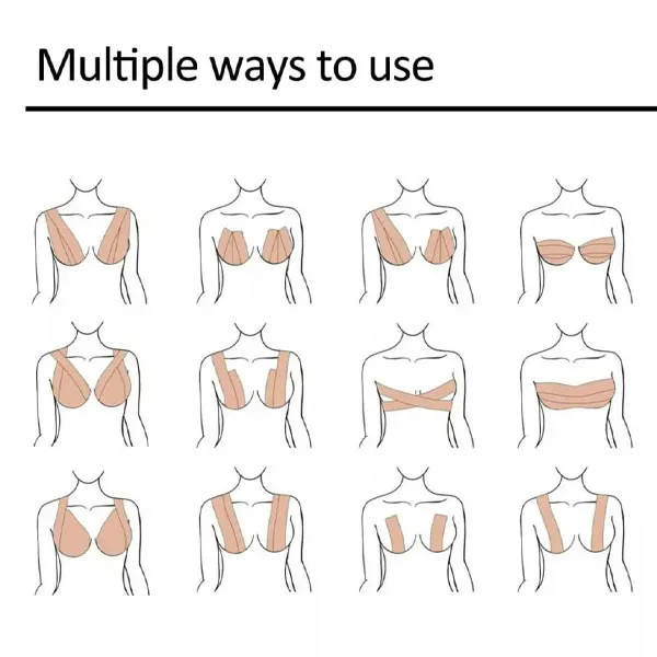 رول 5 متری.رنگ بدن.لیفت کننده .یک بار مصرف.مقاوم در برابر تعریق.قابل استفاده به جای سوتین.تنظیم کننده فاصله بین سینه.امکان عبور هوا و تنفس سینه.مناسب لباسهای دکلته، یقه باز و بدون آستین.عرض چسب: 5 سانتی متر
